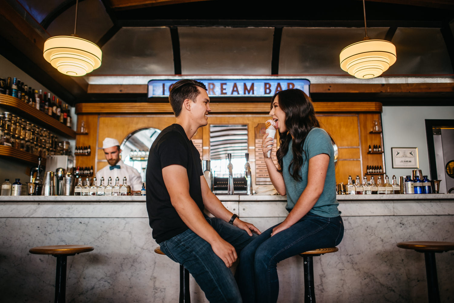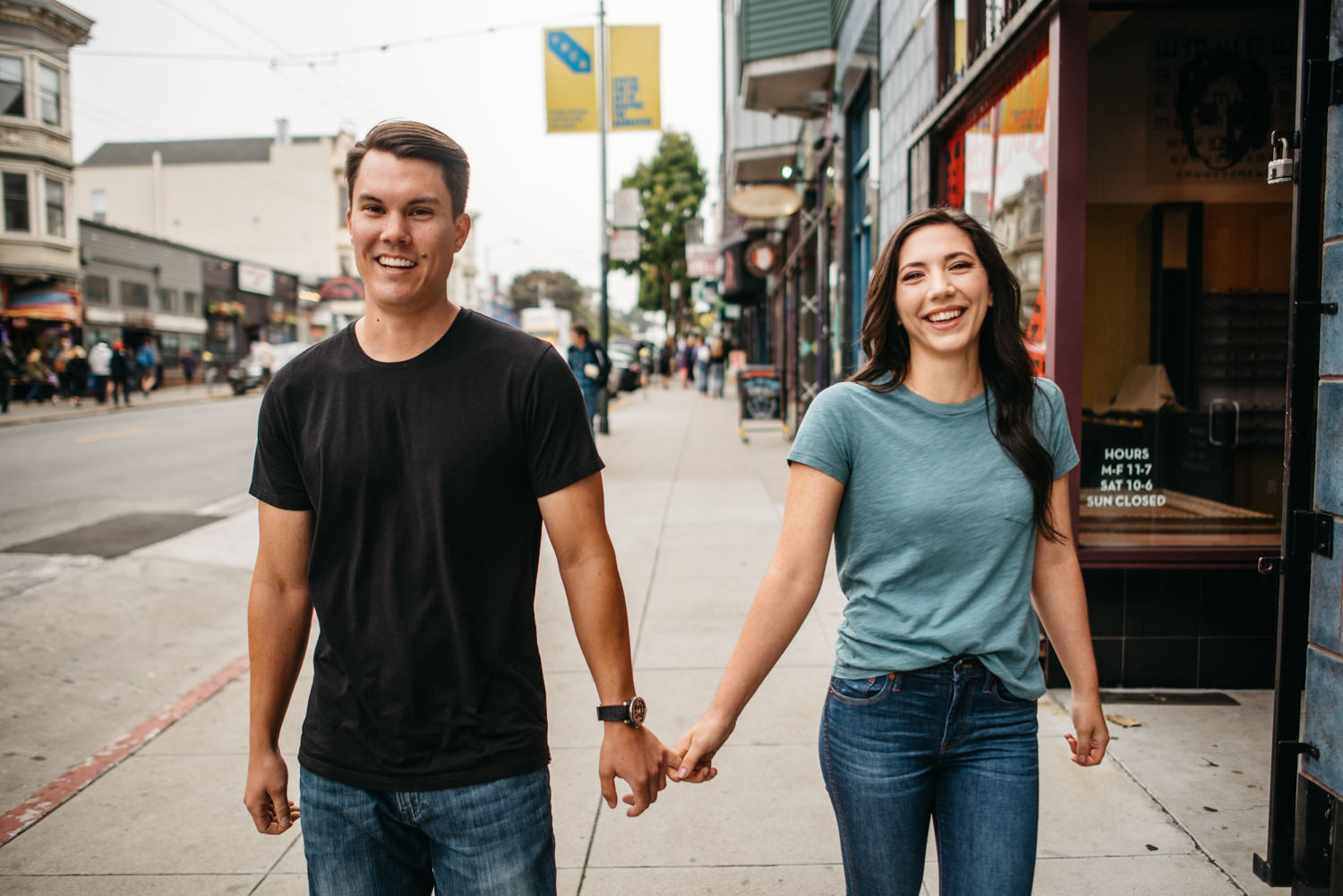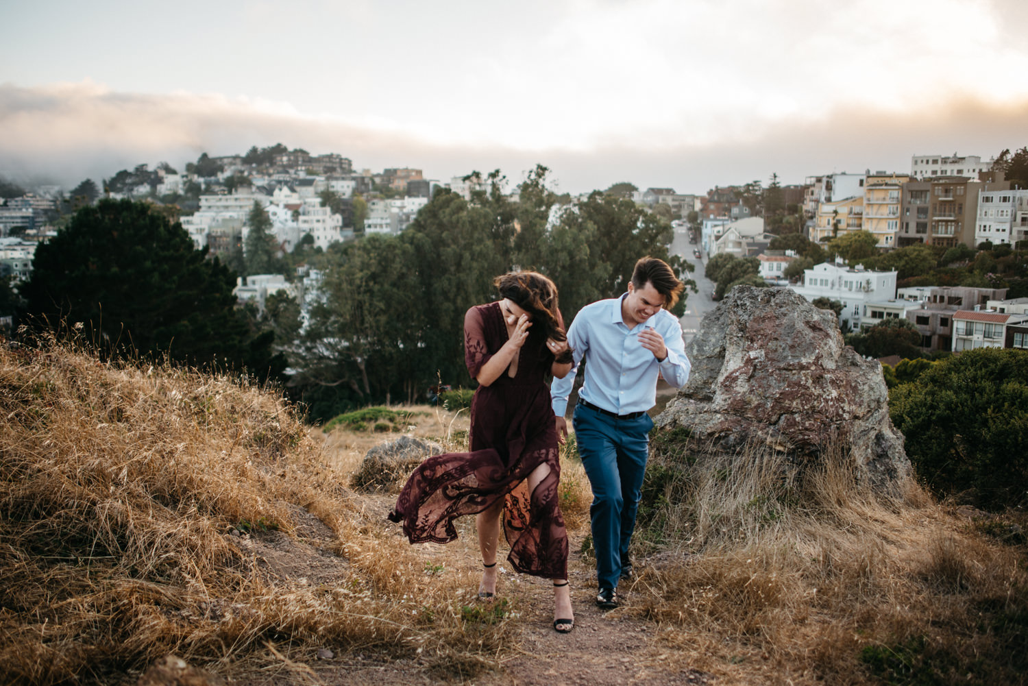 San Francisco is a pretty magical place. In the course of a couple of hours you can go from slurping some amazing Ice Cream at a 1930’s soda jerk, take a brisk stroll through the heart of the hippy movement of the 1960’s, play in a beautiful green park (that weirdly has paths laid with the headstones taken from when the city relocated its cemeteries to Colma in 1900), and summit one of the city’s many windy hills (very windy in this case). And although a bit colder than Shelby and Evan were anticipating they refused to let it slow their joy 😀