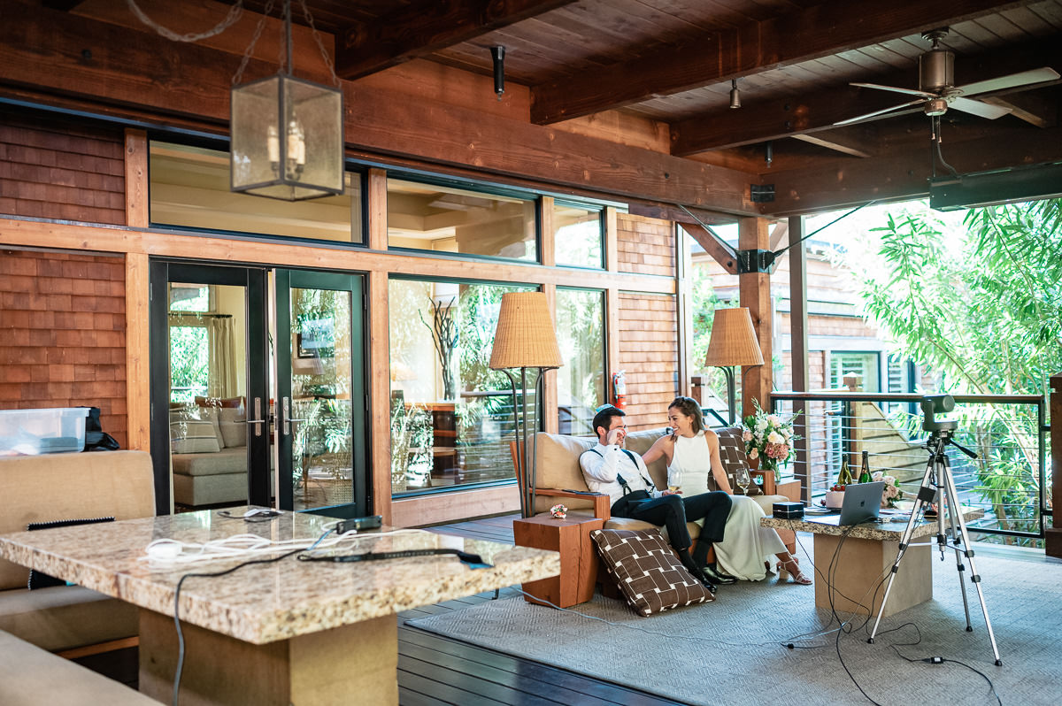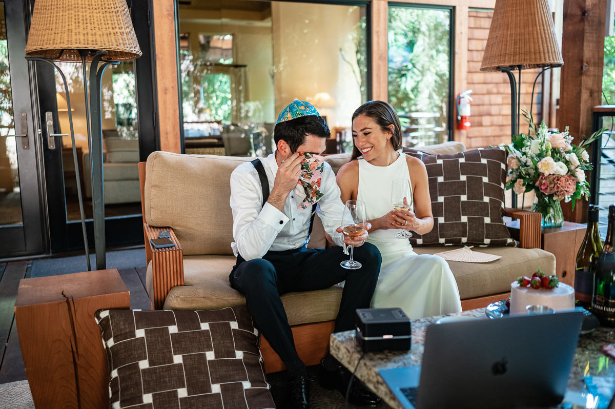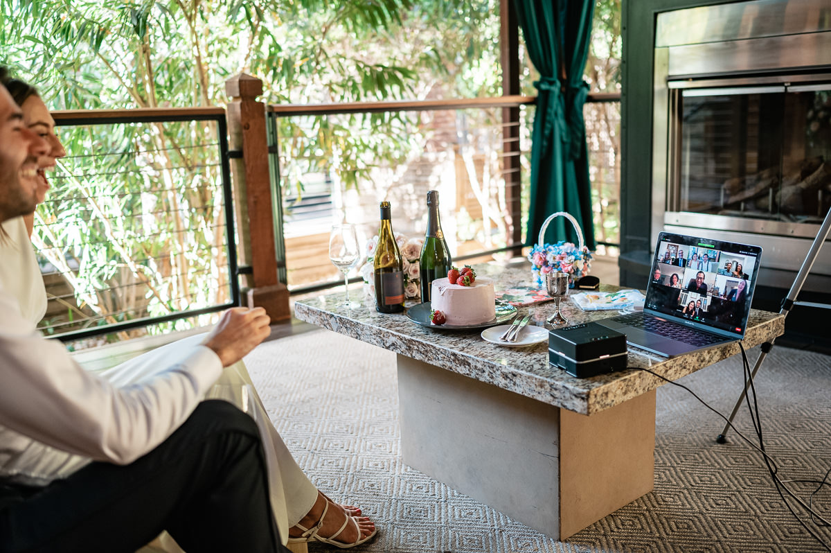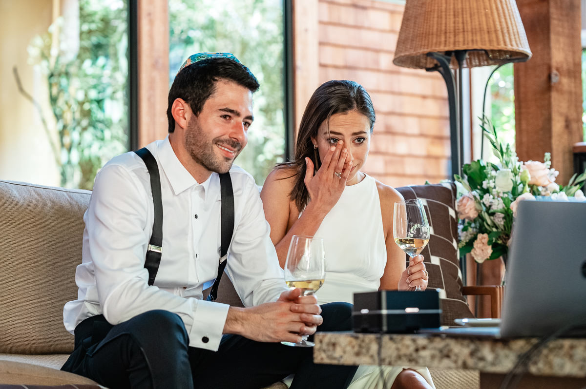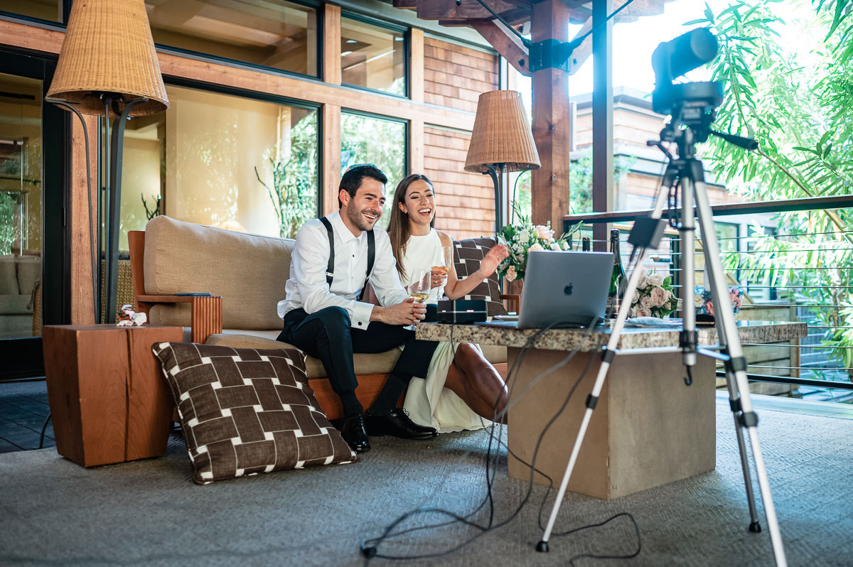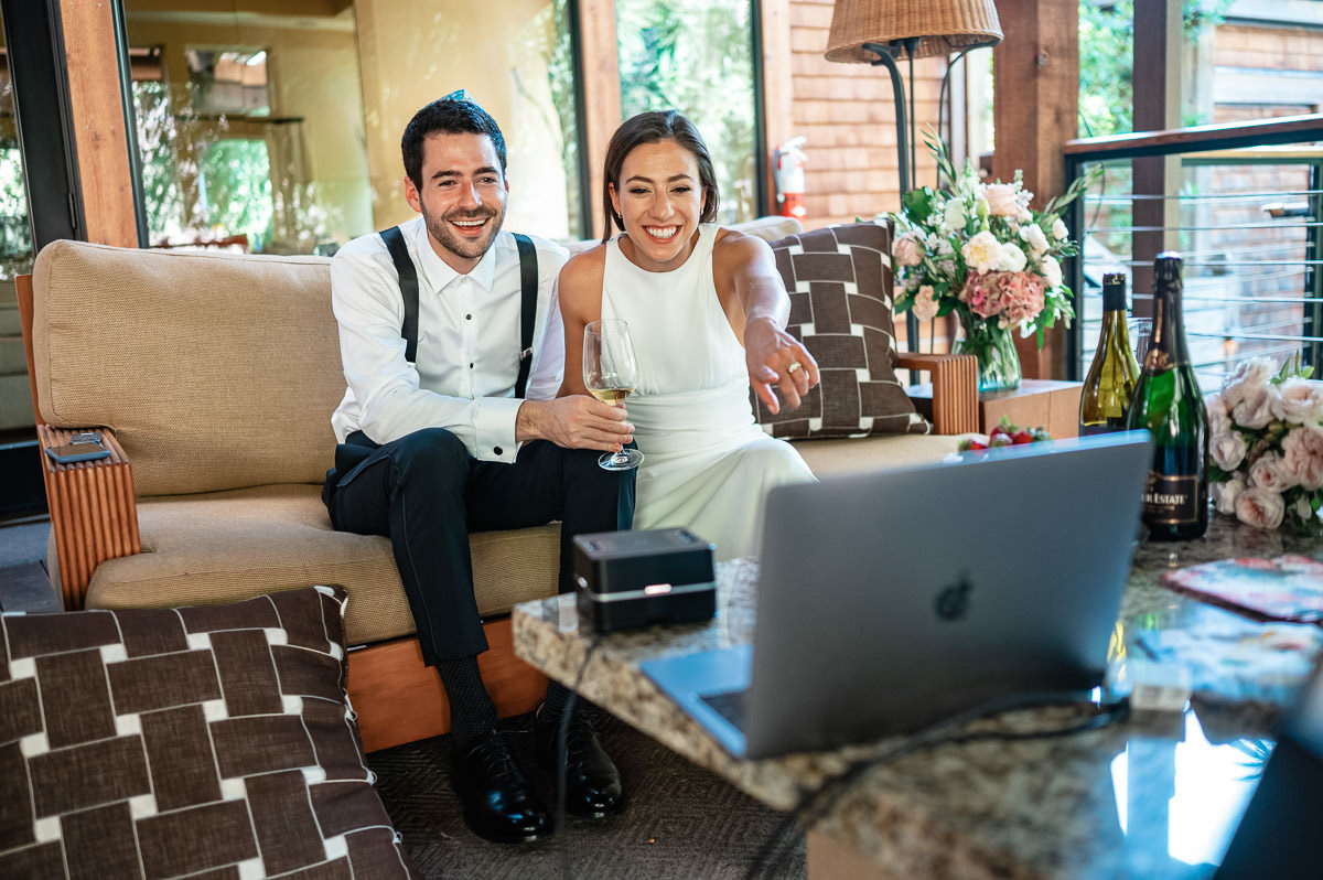 In the age of COVID couples are finding themselves suddenly having to modify their wedding plans. Some are postponing and some are making things smaller. This Calistoga Ranch elopement was done over Zoom and was a lovely and safe experience for all parties involved. Of course, everyone wants to be surrounded by family and friends on their wedding day, but this is the next best thing – emotional, loving, and beautiful.