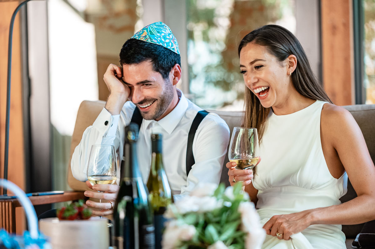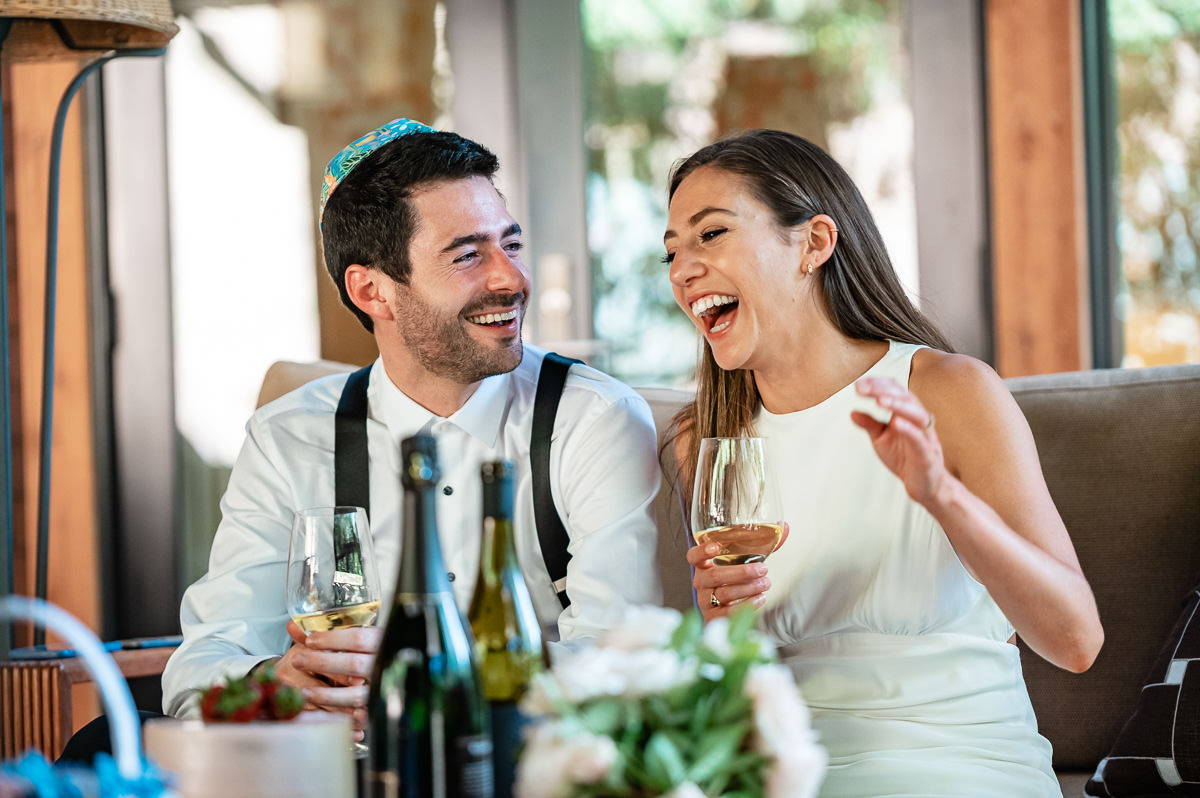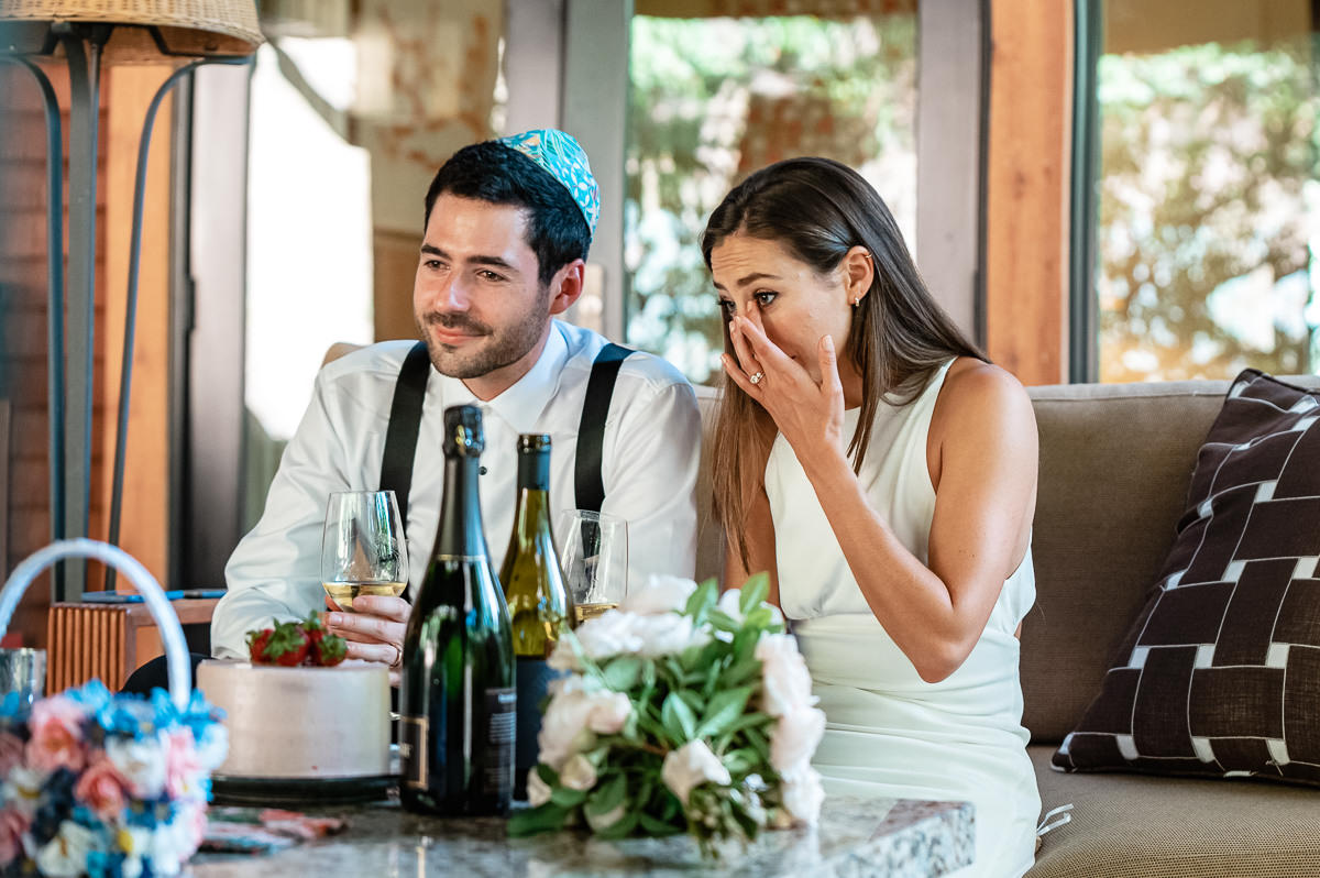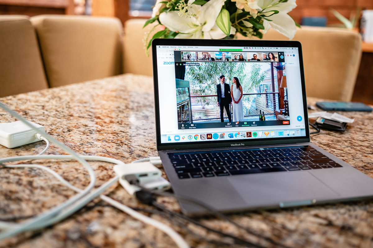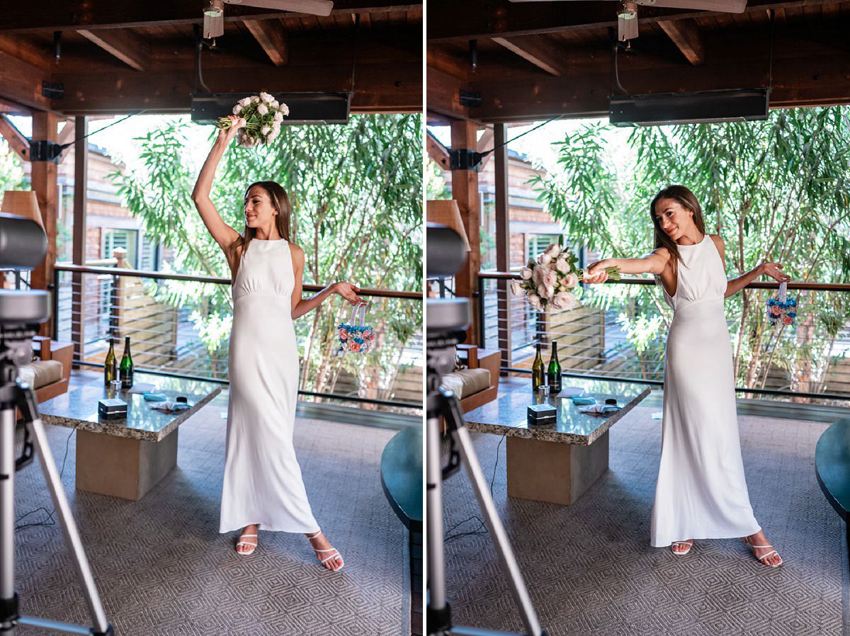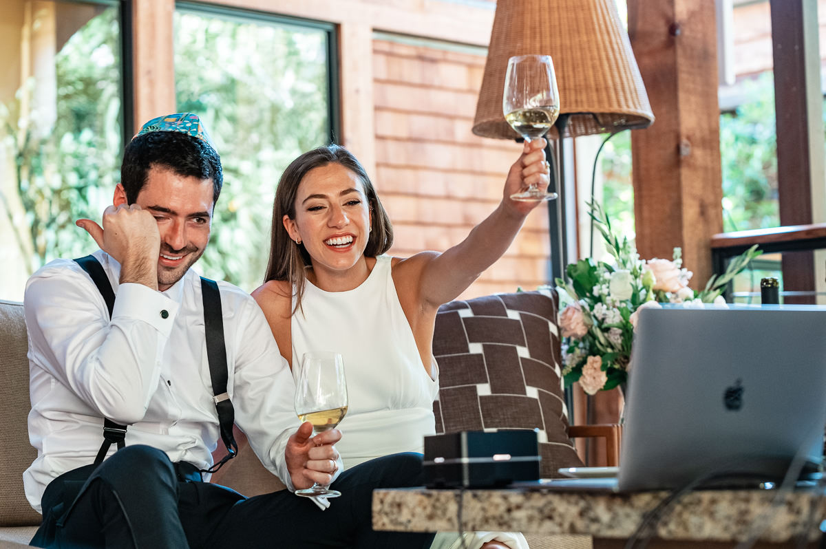 In the age of COVID couples are finding themselves suddenly having to modify their wedding plans. Some are postponing and some are making things smaller. This Calistoga Ranch elopement was done over Zoom and was a lovely and safe experience for all parties involved. Of course, everyone wants to be surrounded by family and friends on their wedding day, but this is the next best thing – emotional, loving, and beautiful.